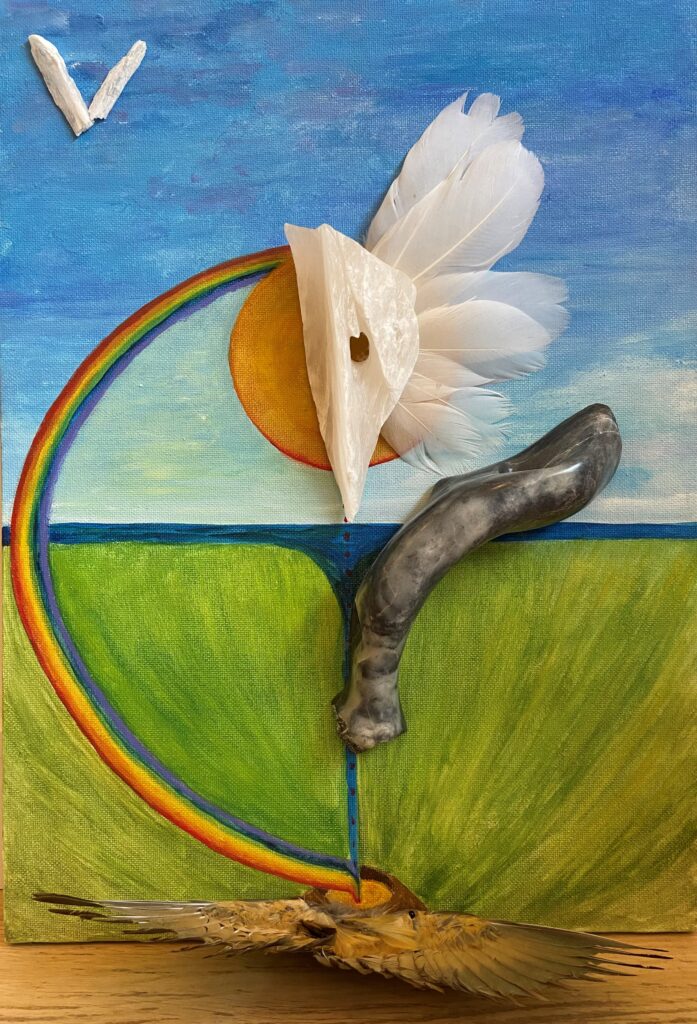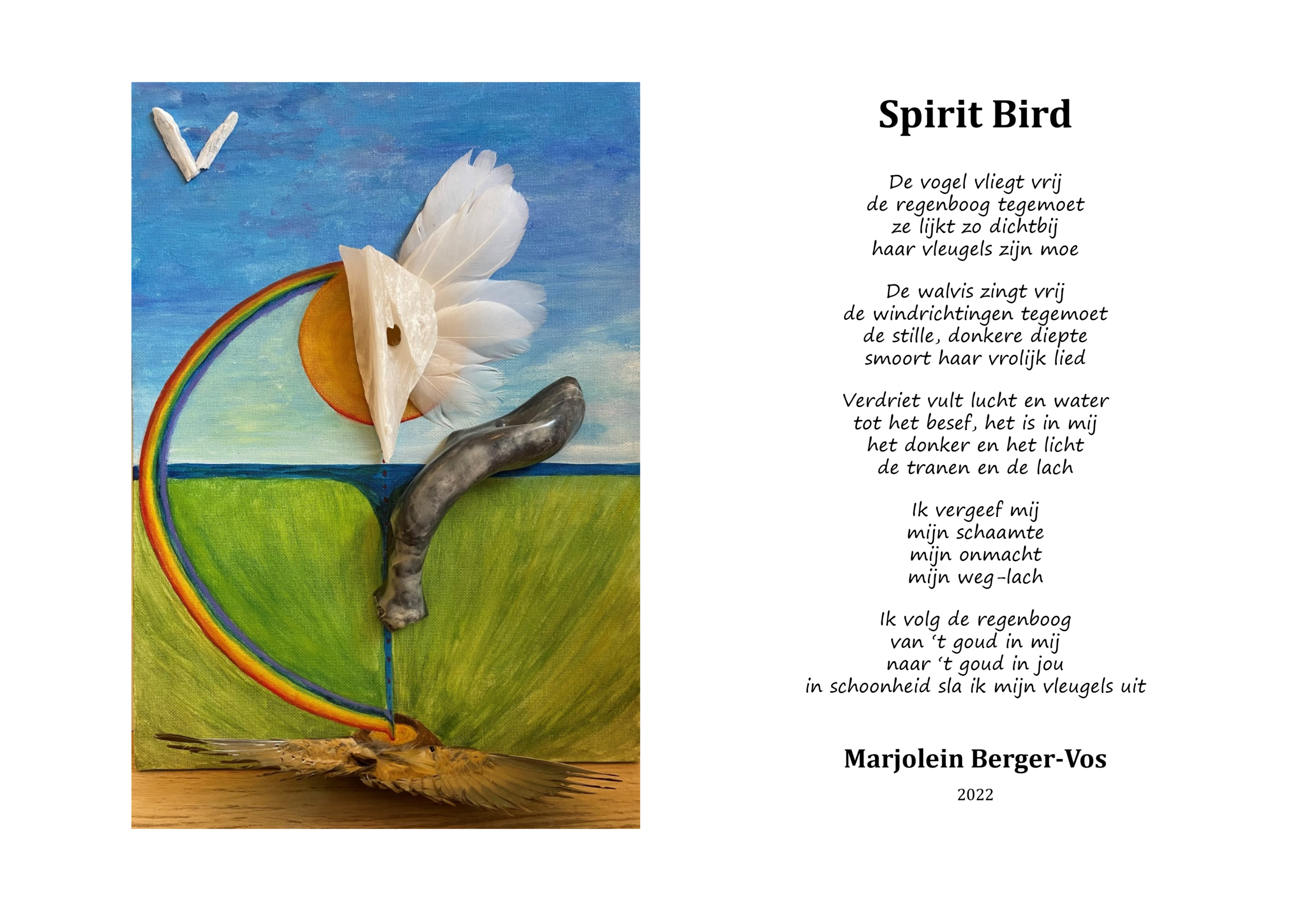 Het gaat mij erom bewust te creëren vanuit mijn hoofd, hart èn buik, ofwel vanuit mijn natuur. Wat wil er door mij heen ontstaan? Dat vraagt een houding van onbevangenheid, niet-weten, vertrouwen, en durven experimenteren. Elk beeld leidt tot een transformatieproces, waarbij ik de opgedane inzichten vat in een gedicht.”